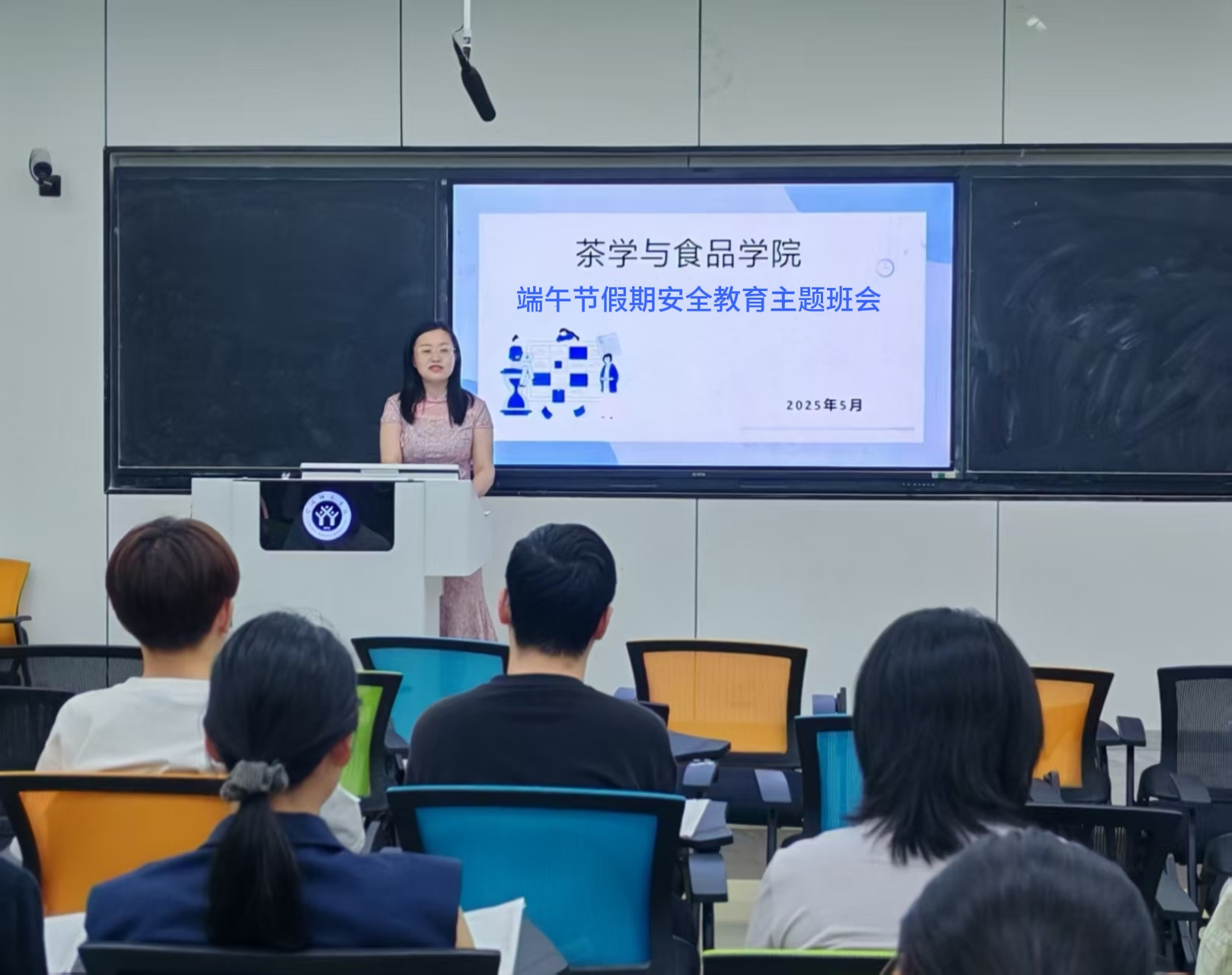 为加强学生的平安认识和防备能力,切实保障结业生成功离校,确保全体学生渡过一个安然的端午节,5月30日下战书4点,我院于教九楼108教室召初步午节平安教育及结业生离校从题班会。本次会议由学院专人员朱晓雯掌管,全院学生积极参取。